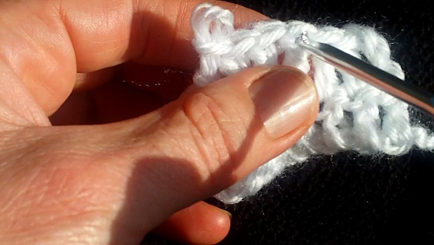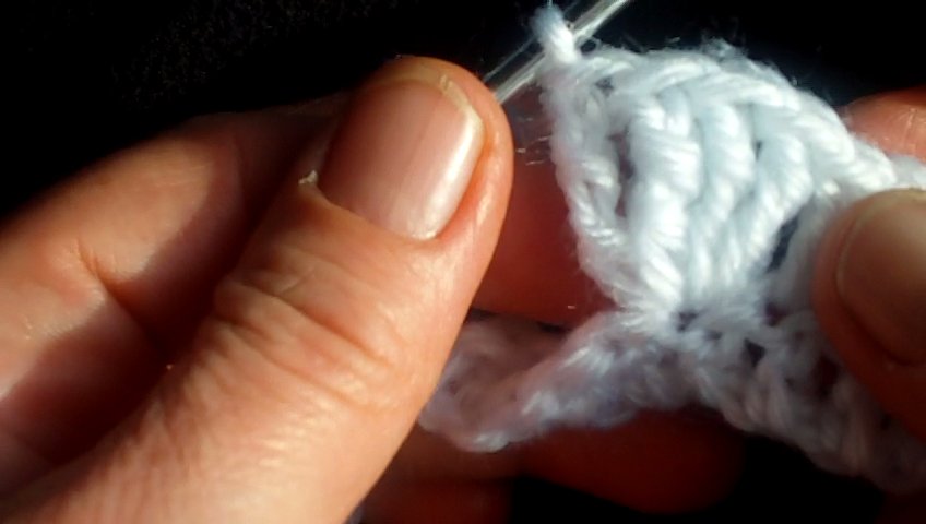 ....... as with a bobble, choose a longer stitch than the main stitch of your row. This time instead of working several stitches together into the same place as if you are decreasing, you work several stitches into the same place as if you are increasing